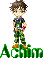 Naamanimaties met de naam Achim. Verschillende naamplaatjes van Achim. Deze naamanimaties zijn leuk voor onder een e-mail of als bericht op je Animaatjes profiel. Plaatjes met de naam Achim erop.